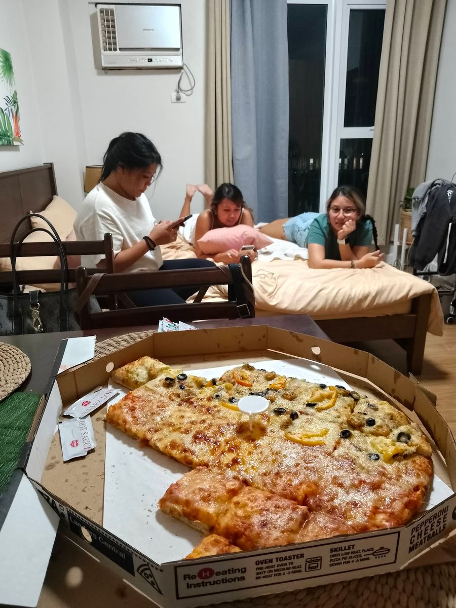 Ate a few slices of pizza when I arrived at the condo. I came very hungry from a two-hour commute!